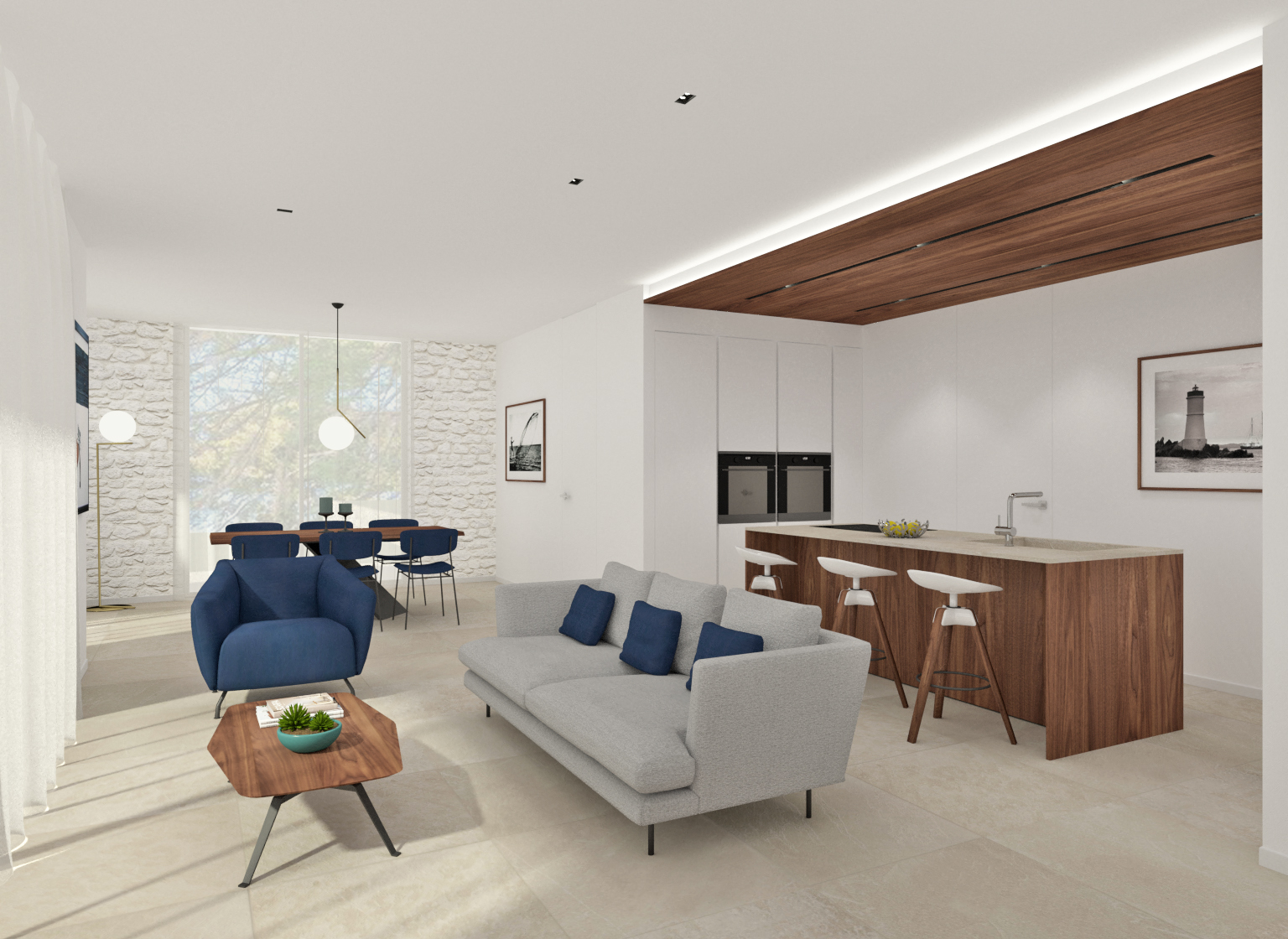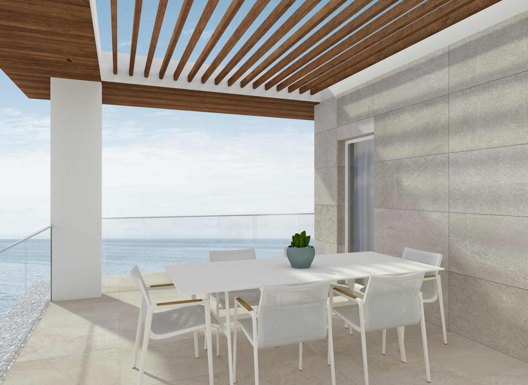 This villa overhanging the sea is made exclusive by white plaster, cedarwood and linear design.