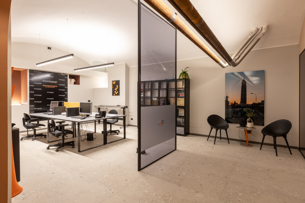 Lo studio si sviluppa su due livelli, pensati per riflettere appieno il nostro approccio progettuale. Ogni scelta materica è stata curata con attenzione, privilegiando qualità, coerenza e durata. La luce, naturale e artificiale, è stata progettata per valorizzare gli spazi e accompagnarne l’uso quotidiano. Abbiamo utilizzato prodotti e soluzioni che adottiamo nei nostri progetti, trasformando lo studio in una sintesi concreta del nostro lavoro.